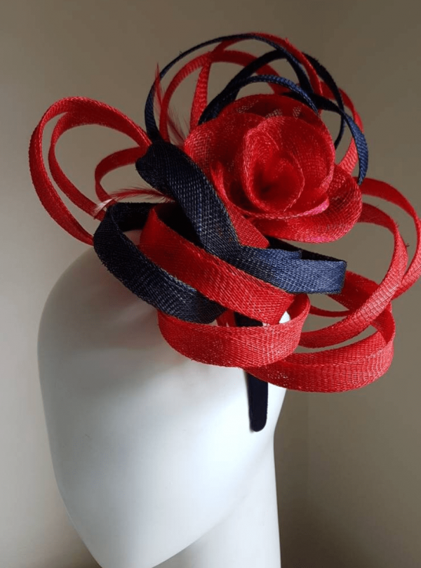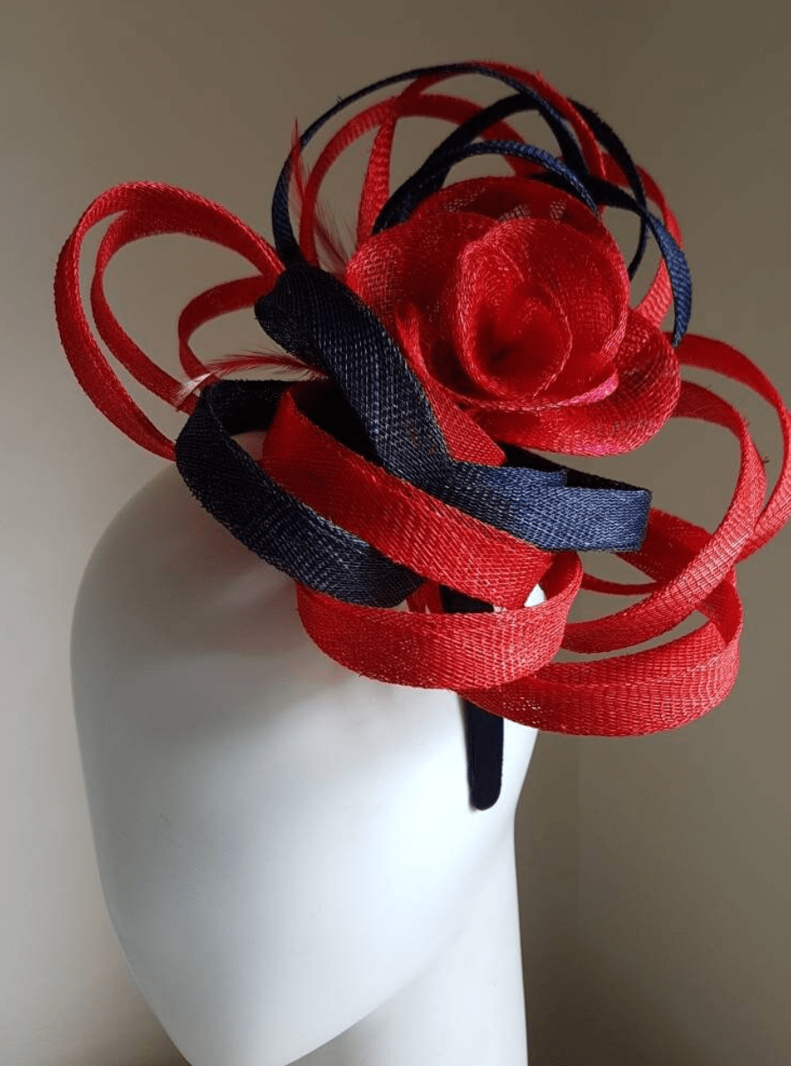 Navy Blue and red looped sinamay fascinator