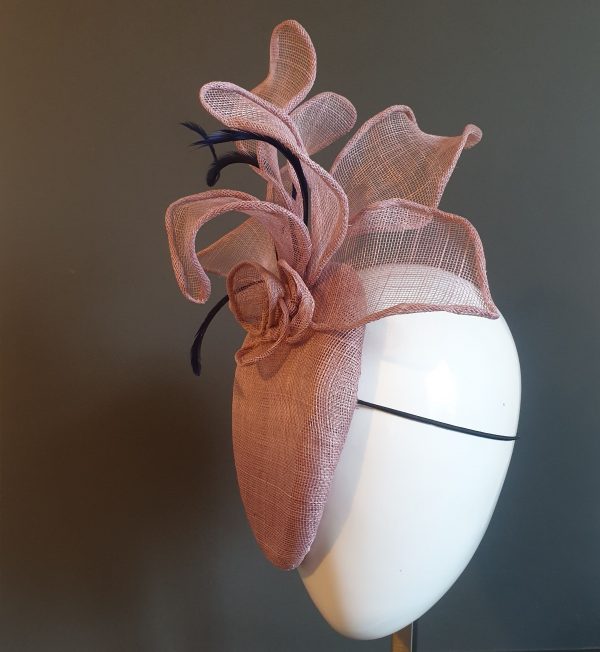 Beautifully handmade Dusky pink sinamay fascinator. It’s suitable for most formal events – races, weddings, parties etc