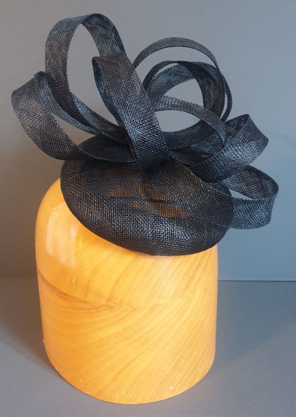 Loopy – Black Sinamay Button Fascinator with Black Loop Design