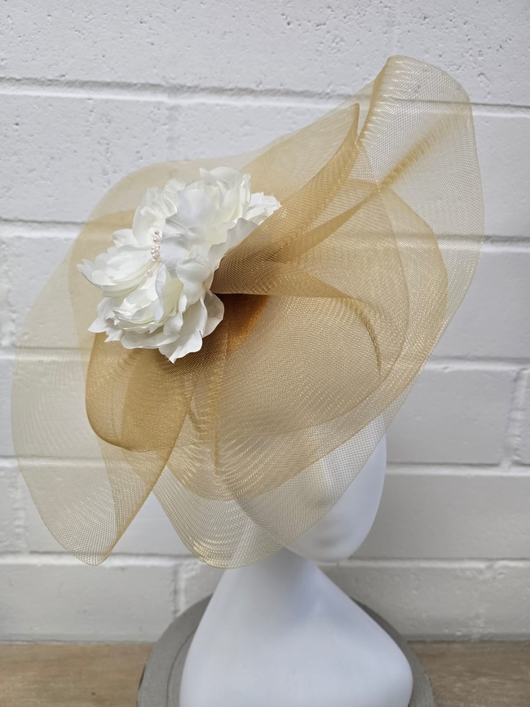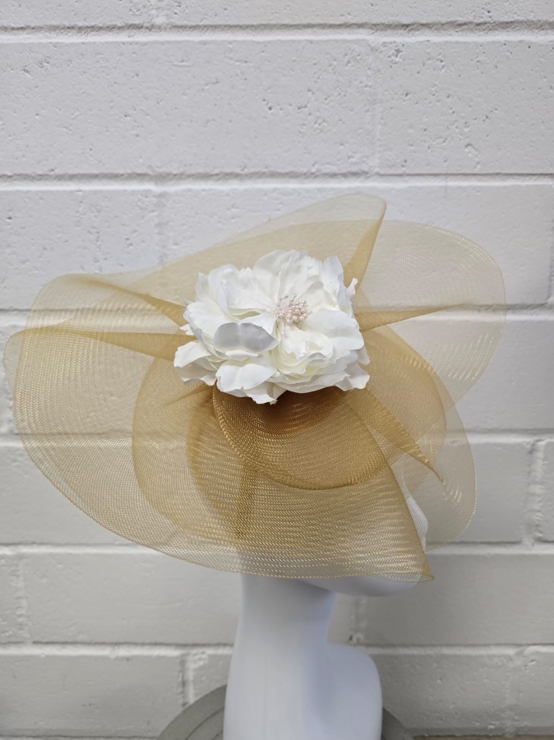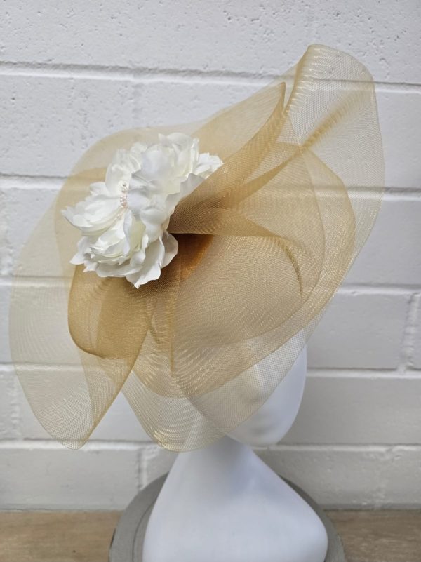 This crinoline gold fascinator brings a touch of refined glamour to any special occasion. The airy, sculpted loops create a graceful sense of movement, while the shimmering gold finish adds a sophisticated glow. Lightweight and comfortable, it sits beautifully on the head, offering an effortlessly polished look for weddings, church events, or high-end celebrations.