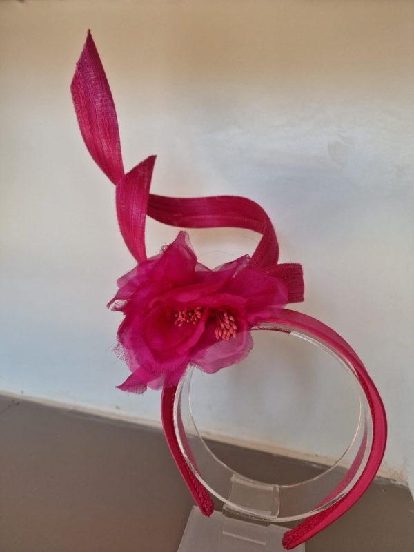 A contemporary millinery piece that showcases bold, architectural detailing. The dynamic twists and sweeping lines give this fascinator a sense of movement, making it a standout accessory for any special event. Lightweight and easy to wear, it offers a modern alternative to traditional headpieces while still capturing timeless artistry.