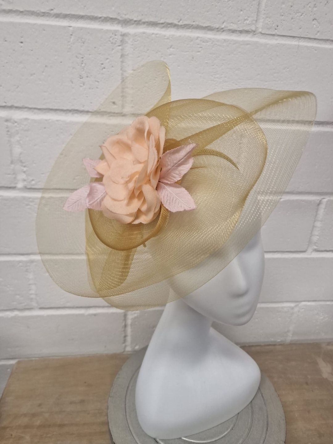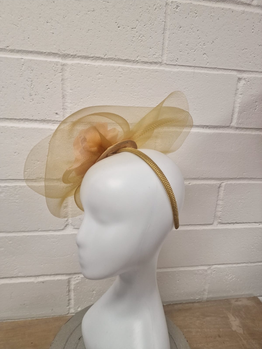 This crinoline gold fascinator brings a touch of refined glamour to any special occasion. The airy, sculpted loops create a graceful sense of movement, while the shimmering gold finish adds a sophisticated glow. Lightweight and comfortable, it sits beautifully on the head, offering an effortlessly polished look for weddings, church events, or high-end celebrations.
